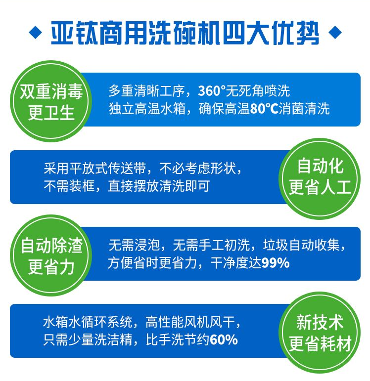 采購商用洗碗機為什么要選擇亞鈦洗碗? 來源:  點擊:1676次   日期:2024-11-18 11:40:03