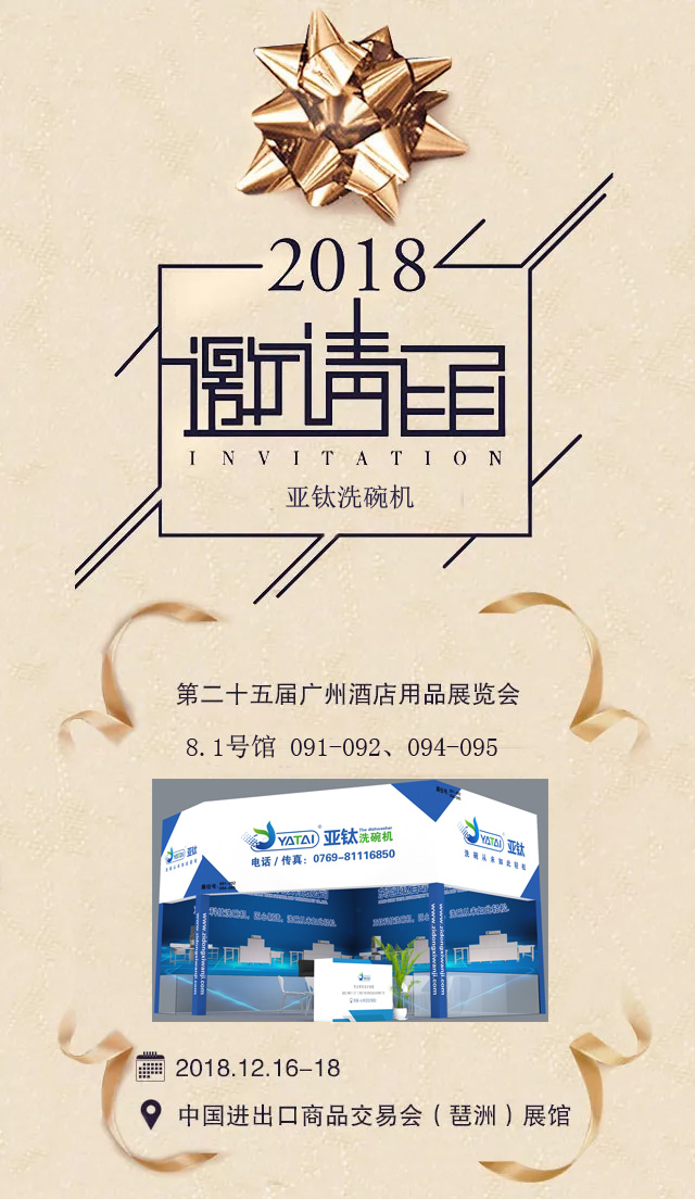 第二十五屆廣東酒店用品展覽會,亞鈦誠邀您的光臨! 來源:  點擊:5399次   日期:2018-12-10 10:44:46