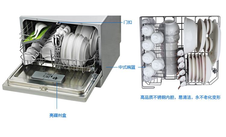 水槽式和放在臺(tái)面上的獨(dú)立式洗碗機(jī)雖然不必多次彎腰擺餐具,但相應(yīng)的容量就比嵌入式的要小。