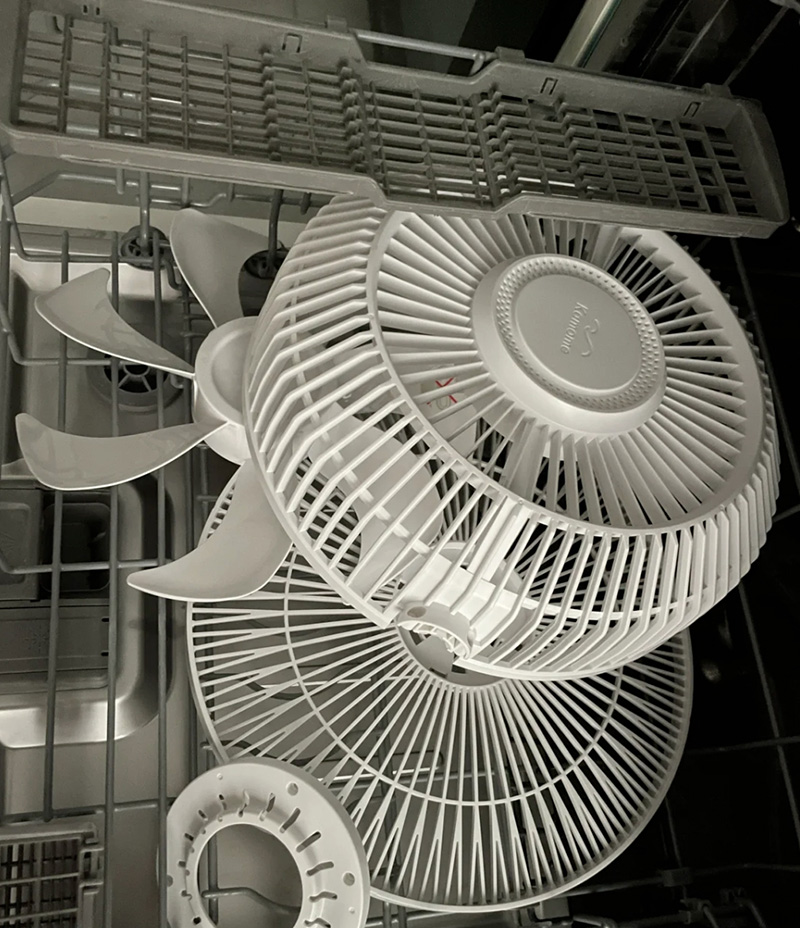 夏天用的風扇,扇葉上滿是灰塵,清洗起來特別麻煩?,F在,把風扇的扇葉拆下來放進洗碗機,開個快速清洗程序,風扇扇葉就能干凈如新,連那些平時清潔不到的死角也能清理干凈。