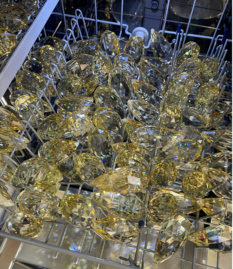 水晶燈看起來漂亮,但每次都要拆下來手洗,實在麻煩。而洗碗機恰好能解決這個問題。拆下水晶燈放進洗碗機,設置適合的程序,洗完之后,水晶燈干凈如新,光澤更亮眼。
