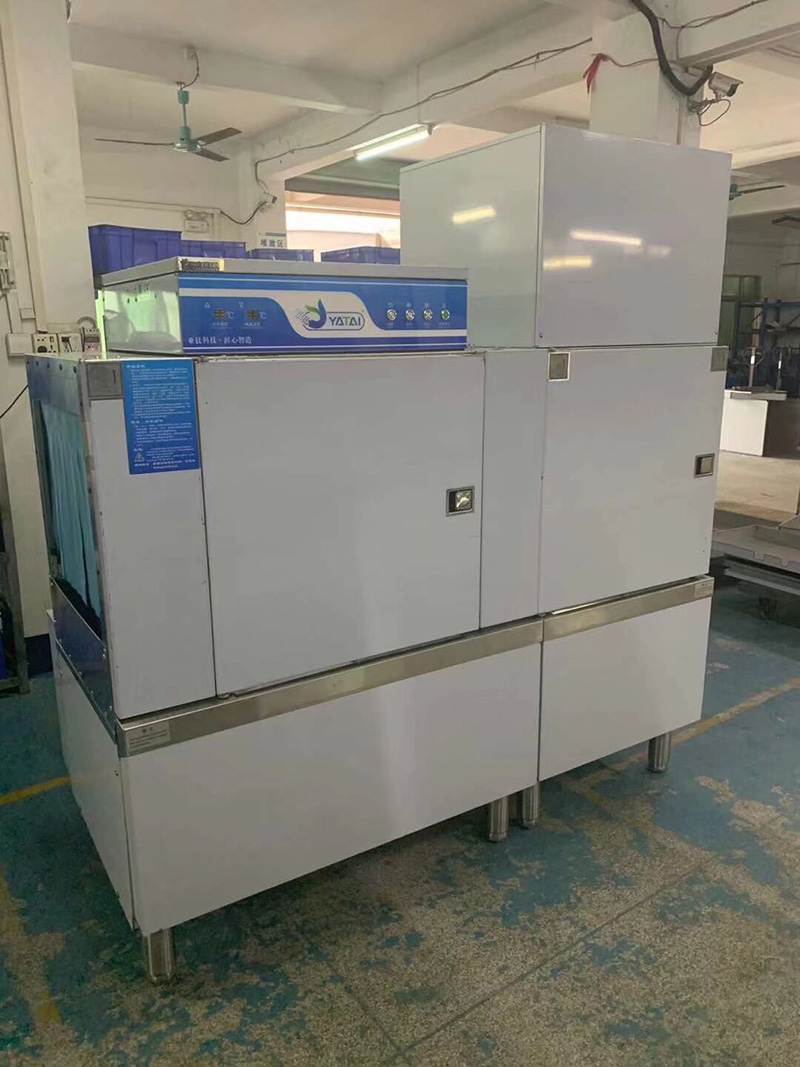 YATAI通道式GYT系列洗碗機,是我公司全面引進德國先進技術,結合中外飲食文化而研發(fā)設計的無死角自動清洗設備,采用標準單元組合,標準化加工生產(chǎn)制造。主要由,清洗單元、高溫凈水漂洗消毒單元(85℃)組成。機器清洗后餐具,經(jīng)衛(wèi)生部門檢測,各項衛(wèi)生指標均符合國家相關標準。全機采用優(yōu)質的不銹鋼板制造,經(jīng)久耐用。噴嘴采用304不銹鋼一體沖壓扇形噴嘴,噴洗時產(chǎn)生扇形水流,可均勻噴洗餐具表面,保證清洗餐具無死角。餐具口朝下直接斜插放于碗框內推進洗碗機,高壓水直接噴洗餐具表面及內部,不留死角。產(chǎn)品性能穩(wěn)定,使用成本低,操作簡單,安全易維護。