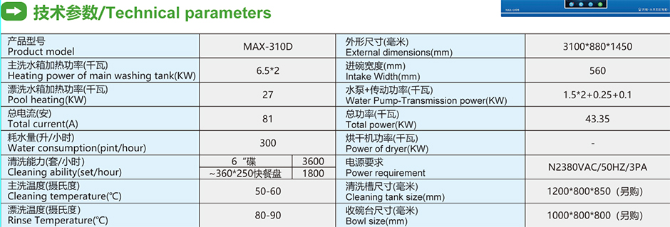 雙缸兩道漂洗平放式洗碗機MAX-310D