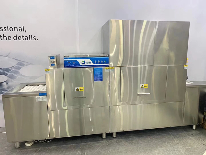 YATAI平放式系列洗碗機,是我公司結合中外飲食文化而研發設計的無死角自動清洗設備,采用標準單元組合,標準化加工生產制造。主要由,清洗單元、高溫凈水漂洗消毒單元(85℃)組成。機器清洗后餐具,經衛生部門檢測,各項衛生指標均符合國家相關標準。全機采用優質的不銹鋼板制造,經久耐用。噴嘴采用高分子材料扇形噴嘴,噴洗時產生扇形水流,可均勻噴洗餐具表面,保證清洗餐具無死角。餐具口朝下直接平放于傳送帶,高壓水直接噴洗餐具表面及內部,不留死角。軟壓帶設計,保證清洗過程中不會因為高壓噴洗導致餐具重疊、破損。傳送履帶采用高分子材料網格傳送,最大化減少清洗死角,獨特餐具防滑功能設計,且可以單獨拆卸,方便清洗維護。產品性能穩定,使用成本低,操作簡單,安全易維護。