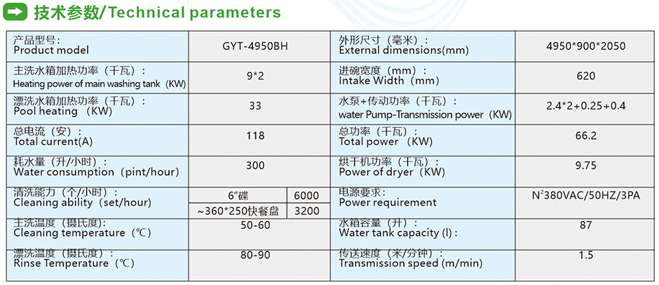 • 雙缸兩道漂洗單烘干斜插式洗碗機GYT-4950BH